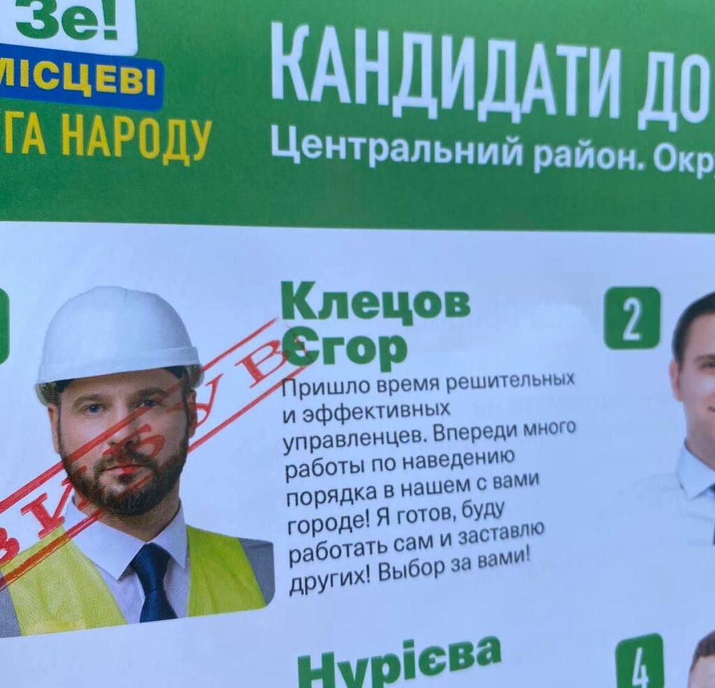 Когда списки кандидатов в депутаты были официально утверждены на съезде партии и зарегистрированы в Центральной избирательной комиссии, кандидаты начали свою рекламную компанию. Для Егора Клецова, который баллотировался в городской совет от «Слуги народа» эта предвыборная кампания превратилась в еще один громкий скандал. Оказалось, что кандидата в депутаты было занесено в базу «Миротворец» по подозрению в поддержке сепаратистов.