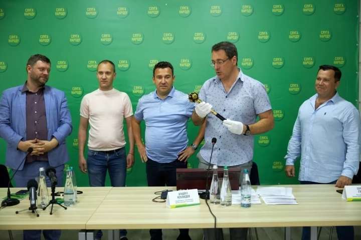 Такий нестандартний спосіб підтримати партійців в усіх областях країни у липні запропонував очільник Донецького осередку “Слуги народу” Владлен Неклюдов. Разом із цією “Президентською булавою” він відкривав регіональну приймальню партії та назвав її символом влади президента, партії та її успіху. Після цього булаву почали передавати з одного регіону до іншого. У вересні черга дійшла і до Миколаївської області.