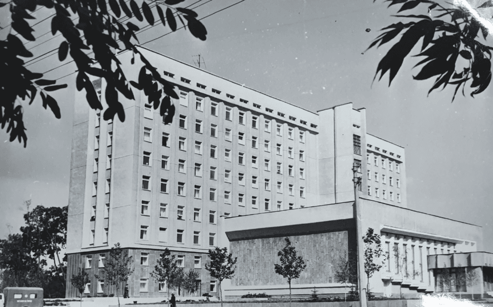 Архітектори розробили план створення майбутньої державної установи. Будівля мала бути у вигляді розгорнутої книги, висотою в шістнадцять поверхів. У той час на тій же площі знаходилася будівля обласного комітету партії, яка була б меншою за майбутню будівлю. Обласна адміністрація затьмарювала б обком партії. Через це креслення будівлі спростили та “урізали”. Зробивши простий дев’ятиповерховий будинок без будь-яких прикрас.